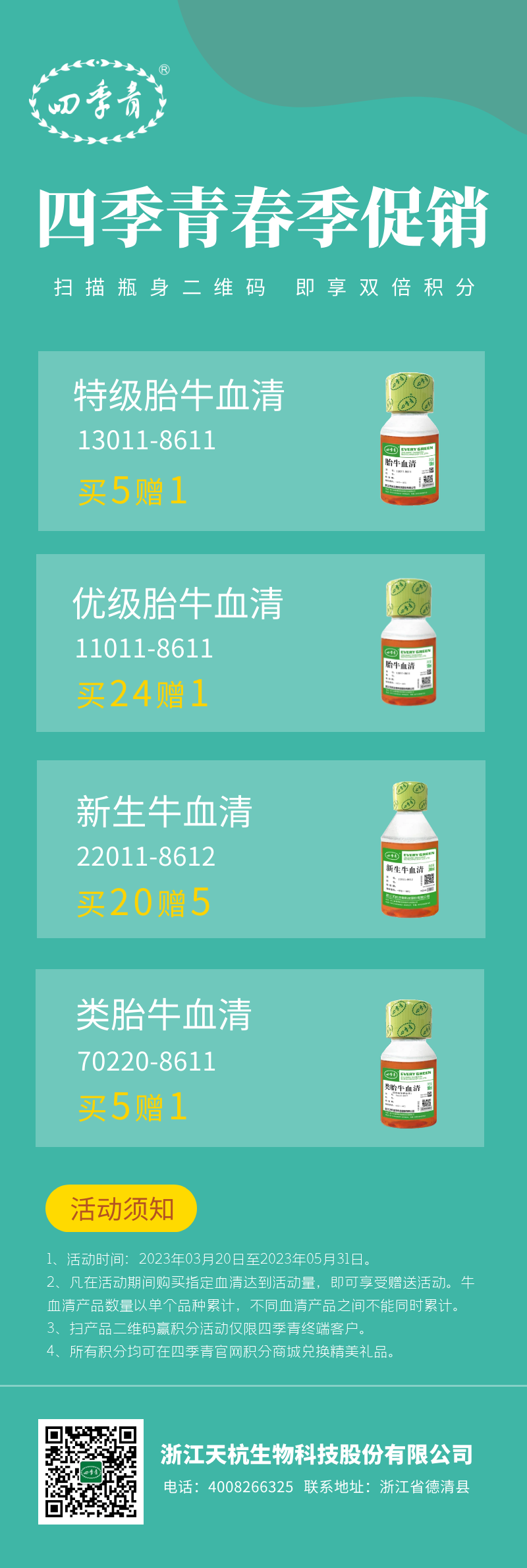 四季青牛血清產(chǎn)品限時促銷,最多買5送1+雙倍積分,快來領(lǐng)取!